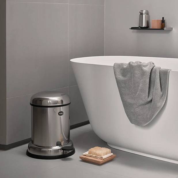 Vipp 14 Pedalhink är 8L versionen av Holger Nielsens designikon från 1939. Pedalhinken är tillverkad av rostfritt stål och kombineras med en uttagbar innerhink i hållbart galvaniserat stål. Locket i rostfritt stål är utrustat med en dämpningsmekanism som sakta sänker ner locket i en tyst och graduell rörelse, där en omslutande gummiring garanterar en lufttät förslutning. Pedalhinken finns i flera olika storlekar med varierande volymmått.