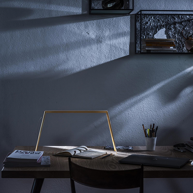 Bordslampa Bridge 1 från Focarini är inte bara en funktionell ljuskälla utan även en elegant dekorativ detalj. Inspirerad av en bro, har lampan en smal metallram som är laserskuren för att säkerställa precision i designen. Den inbyggda LED-glödlampan är formad som ett ljusrör längs med brons undersida, vilket skapar en vacker downlight och ett charmigt accentljus i rummet. Med en inbyggd rörelsesensor behöver du inte längre tänka på att slå på eller av ljuset – det tänds automatiskt när rörelse upptäcks i närheten, vilket ger dig ljus när du behöver det som mest.