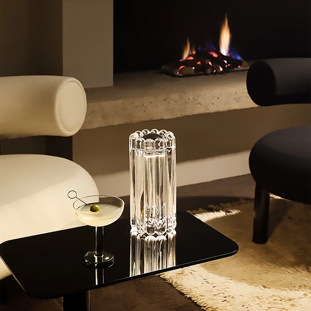 Press bordslampa LED från Tom Dixon kombinerar industriell precision med skulptural estetik. Med en inbyggd 2700K LED-ring ger den en varm atmosfär och sprider vackra mönster. Den har en utbytbar metalltopp i krom, mässing eller svartkrom. En belysningsikon där material, ljus och form möts i perfekt balans.