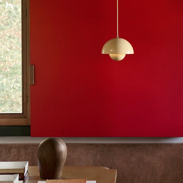 Man ser tydligt cirklarna och halvcirklarna på Taklampan Flowerpot som Verner Panton ofta lekte med i sin formgivning. Flowerpot-lampans form gör att man inte kan bländas av ljuskällan – en myslampa som ger ett riktigt behagligt sken. De glada färger i flowerpots alla varianter gör att denna lampa är lätt att kombinera som inredningsdetalj i hemmets alla rum. Lampan ingår i en serie med bordslampa, vägglampa och taklampa i olika utförande och storlekar. Textilkabel i matchande kulör, längd 300 cm ingår. Koppar, mässing och rostfritt stål-lamporna har svart textilkabel.