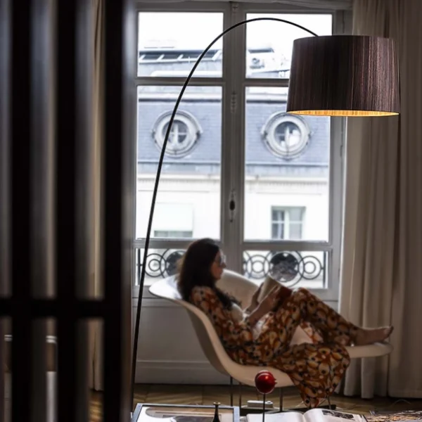 Twiggy golvlampa är en elegant och sofistikerad golvlampa som ser ut att gå emot tyngdlagen. Lampan sprider ljuset både uppåt och nedåt. Idealisk för miljöer där man vill kombinera inredning med funktionell och modern design.
