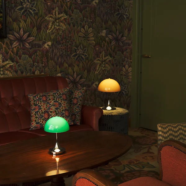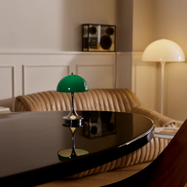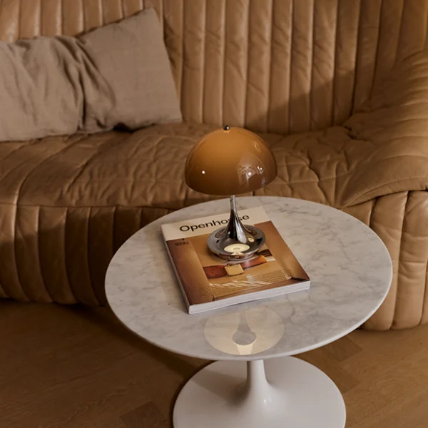 Panthella-lampan, skapad av Verner Panton i samarbete med Louis Poulsen 1971, är en ikonisk design som speglar Pantons unika stil och strävan efter 100 % bländfritt ljus. Med sin organiska form och trumpetformade fot reflekterar den mjukt ljus och är en tidlös klassiker. Panthella 160 Portable är en smidig, mindre version med 16 cm i diameter—perfekt att ta med från rum till rum eller utomhus, där den alltid skapar en härlig atmosfär. Laddas smidigt via USB-C och levereras med en medföljande USB-C-kabel (adapter medföljer ej).