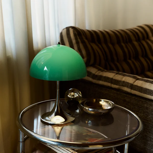 Panthella 250 Portable är en laddningsbar bordslampa som kombinerar funktion och form i ett ikoniskt designuttryck. Den kupolformade skärmen sprider ett mjukt, diffust ljus samtidigt som en del av ljuset riktas nedåt och reflekteras av den blanka lampfoten, vilket skapar ett behagligt ljus. Tack vare att lampan är portabel kan du enkelt placera den var som helst i ditt hem. Laddas smidigt via USB-C och levereras med en medföljande USB-C-kabel (adapter medföljer ej).