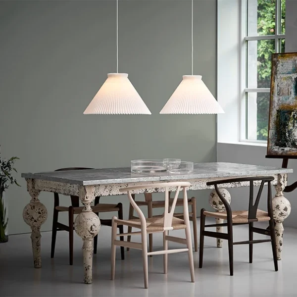 Den ikoniska 1-lampskärmen, designad av Tage Klint år 1942, kombinerar tidlös dansk design med genuint hantverk. Lampan levereras som en komplett pendel med ett specialstativ, mässingsupphängning och en vacker linnesladd, 300 cm, som förstärker det exklusiva uttrycket. Denna danska designklassiker skapar ett mjukt, vackert ljus som ger en mysig atmosfär till hemmets alla rum. Lampskärmen finns i vikt papper eller standardfolie (hård PVC), så att du kan välja det uttryck som passar bäst i ditt hem.