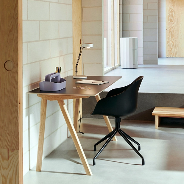 CPH90 skrivbord förenar klassisk design med ett modernt uttryck. Med sina eleganta, asymmetriska ben och den stilrena bordsskivan har bröderna Bouroullec skapat ett funktionellt och avskalat skrivbord som passar lika bra i hemmakontoret som i moderna arbetsmiljöer. Bordet finns i flera träslag och material, med möjlighet att välja harmonierande eller kontrasterande kombinationer för ett personligt uttryck.