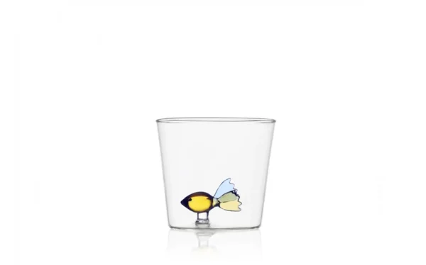 Ett vackert munblåst glas med en söt dekorativ färgad fisk från Ichendorfs kollektion Marine Garden.