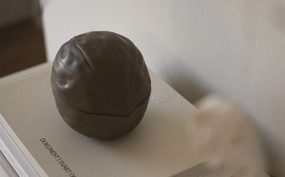 DBKDs valnötsskål är en skål formad som en valnöt, perfekt för att ge köket eller matsalen en lekfull touch. Den är tillverkad i keramik eller glas, tål maskindisk och finns i två färger. Perfekt för julens gottesaker.