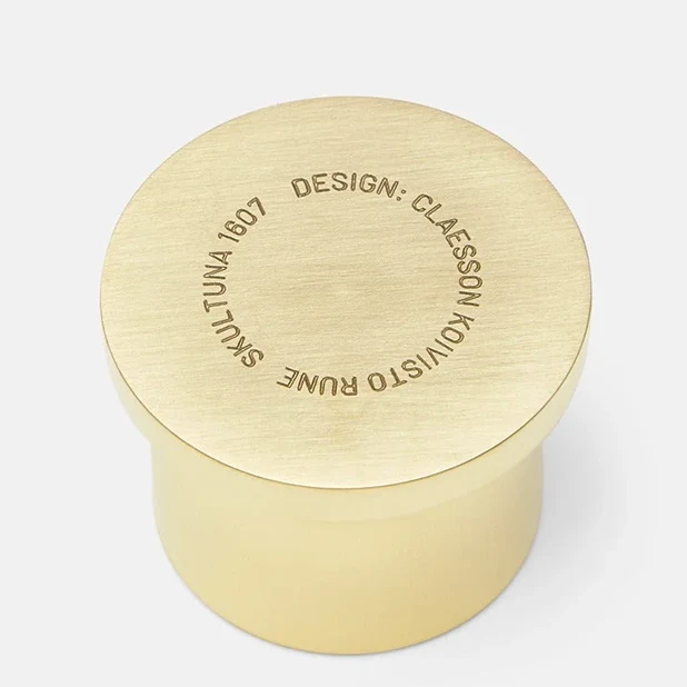 Bijou förenar två perfekt proportionerade former: ett podium och en urnformad hållare, vars speglande silhuetter skapar en lekfull optisk balans. Den rena och avskalade designen gör att Bijou passar överallt – som solitär, i par eller i grupp, på bordet, i fönstret eller på frukostbrickan. Tillverkad i polerad mässing med Skultunas traditionella hantverkskvalitet är den en modern klassiker redan från start.