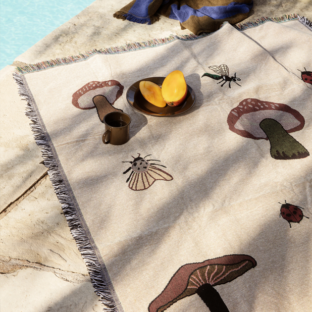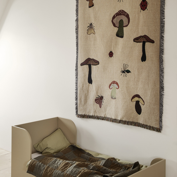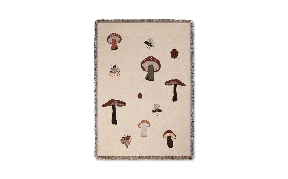 Ta med naturen inomhus med den bedårande Forest Tapestry pläden från Ferm Living. Som en liten saga från skogen har konstverket olika svampar, nyckelpigor och små insekter. Tillverkad i 100% bomull med den klassiska tapestry-tekniken, är filten perfekt för att mysa under vid kalla dagar. Låt Forest Tapestry Blanket ligga avslappnat över sängen eller häng den på väggen som en mjuk, lekfull väggbonad.