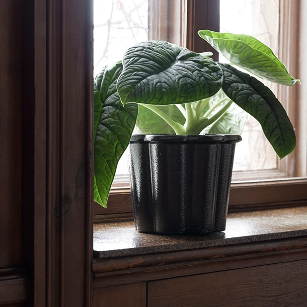 Fjällsippa kruka från Byarums Bruk är designad av keramiker Signe Persson-Melin i mjuka former av sandgjuten aluminium. Placera krukan på fönsterbänken, bordet eller direkt på marken. De två storlekarna är både vackra var för sig och tillsammans.