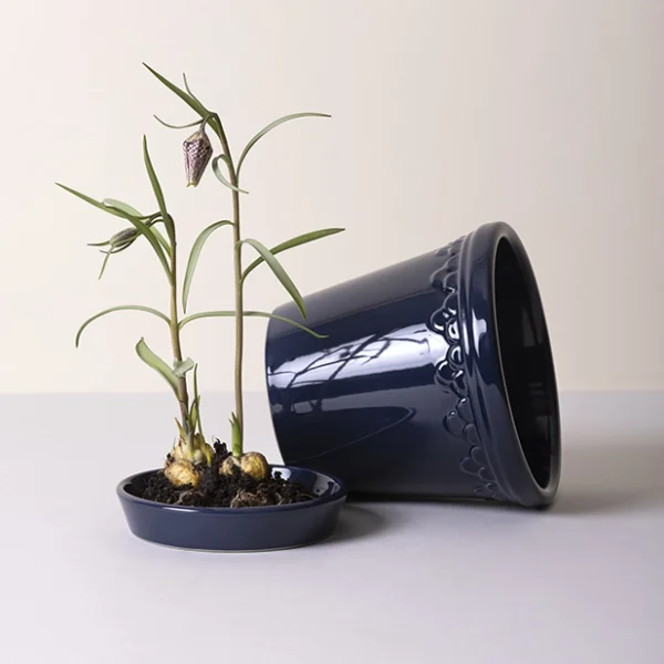 Köpenhamn – Slottskrukan – med fat glaserad i Sapphire blue.