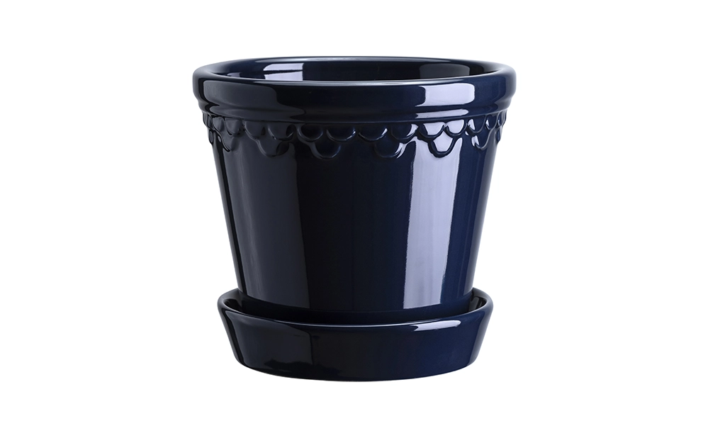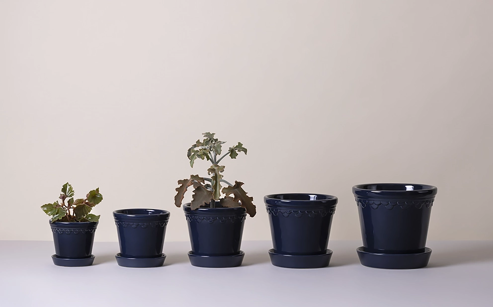 Steffen Berg fann inspirationen till designen i en kruka som ursprungligen gjordes till det danska kungliga slottet Fredensborg 1860. Idag tillverkas Bergs Potter´s krukor av deras keramiker i en liten by nära Lucca i Toscana. Ett ordentligt dränage skapar möjlighet för växternas rötter att andas samtidigt som krukorna håller den fukt som plantorna behöver. Fat ingår.