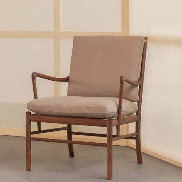 OW149 Colonial Chair formgavs av Ole Wanscher 1959 och är än idag hans mest kända verk. Som minimalist föredrog Wanscher det slanka och förfinade uttrycket. Trots sina nätta mått är stolen mycket stabil, tack vare omsorgsfullt utformade konstruktionsdetaljer. De eleganta, lätt böjda armstöden som reser sig svagt innan de vinklas nedåt är en välkänd signatur från Wanscher. Tillgänglig i en mängd utföranden i olika sorters trä och med dynor i tyg eller läder.