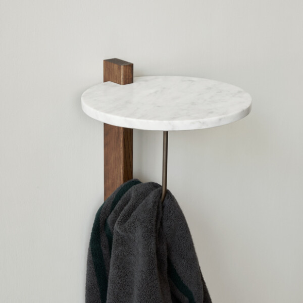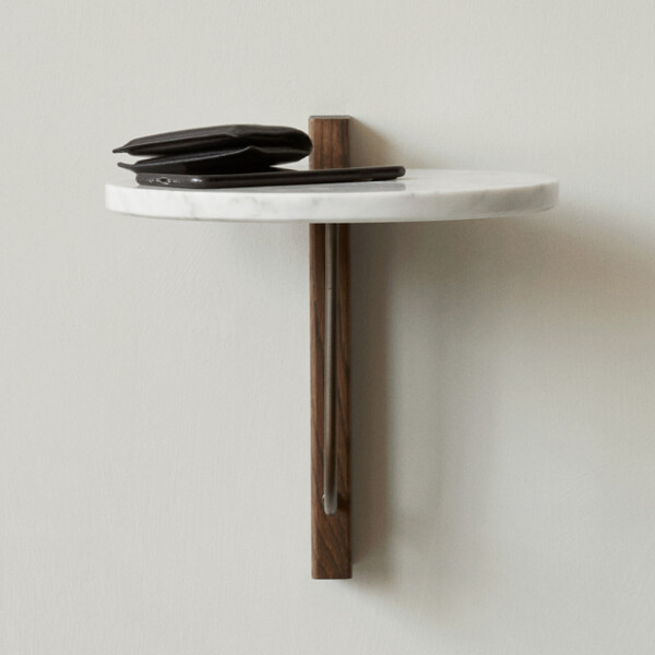 Vägghylla i marmor, ek och stål från Audo Copenhagen.