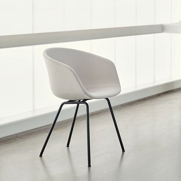 About a Chair från Hay är en härlig stol med mjuka former som finns i flera olika utföranden. Tanken bakom formgivningen av About a Chair var att skapa en stol med en stilren och enkel design som kan liva upp och komplettera alla möjliga rum med sin stora färg- och kombinationsbredd. Stolen finns även i andra varianter med eller utan armstöd, stoppad sits och rygg, med snurrfot, snurrfot med hjul. Det stora utbudet av tyg och olika underreden ger möjlighet att skapa nästan oändliga designkombinationer.