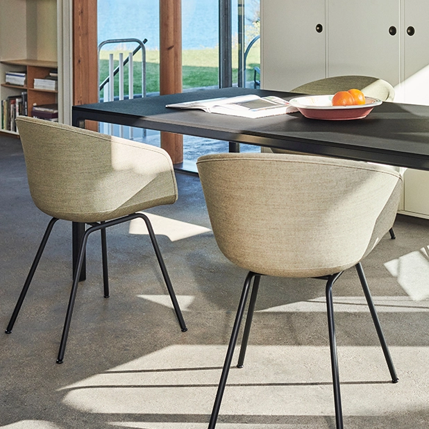 AAC27 från HAYs About A Chair Collection. Här visar vi några olika utföranden i tyg Remix och Linara. Det finns ett stort urval av olika färger och material, vänligen kontakta oss vid intresse av andra utföranden.