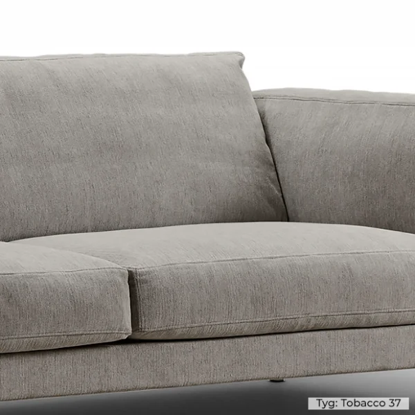 Sittdynan är stoppad med HR-skum i två lager med ett fastare skum i botten och mjukare skum upptill inneslutet i fiberfyllning. Stomme i massivträ med nozagbotten. Sitsplymåer är fyllda med kallskum med svep av polydun. Soffan levereras som standard med hörnben i borstat rostfritt stål.