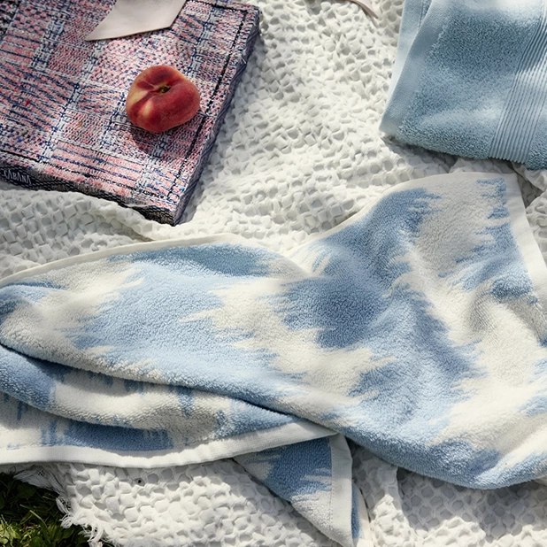 Elegant jaquardvävd frottéhandduk med tvåfärgat zickzackmönster i kontinental stil. Tillverkad av 100% kammad bomull som ger en mjuk och fluffig känsla med utmärkt absorptionsförmåga.