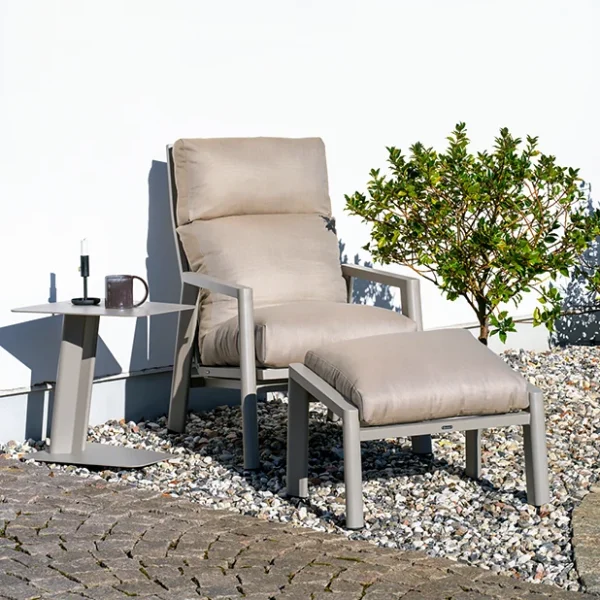 För extra komfort finns tillhörande fotpall.