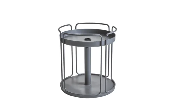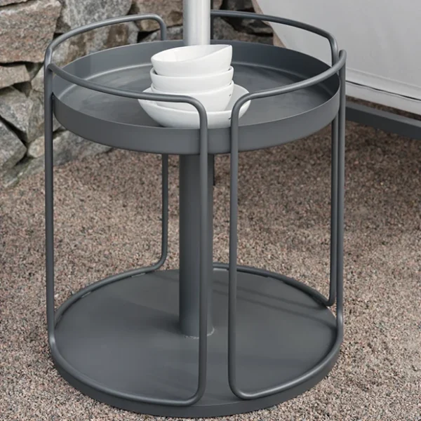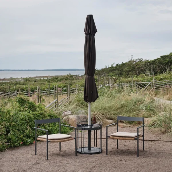 Shady sidobord är mer än ett vanligt sidobord. Förutom att vara tungt och robust med två nivåer av bordsskivor, fungerar det även som en parasollfot vid behov. Justerbar för att passa två storlekar av parasollstänger: 38 och 48 mm. Tillverkat i stål.