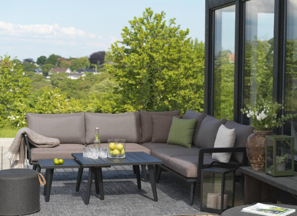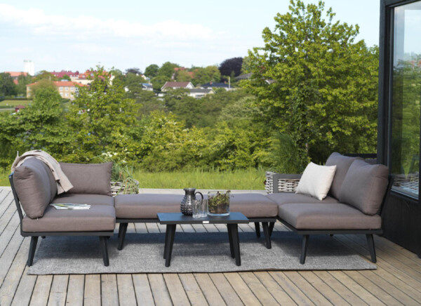 Denna Villac-grupp är en hörngrupp i svart eller vit aluminium med dynor i beige. Armstöd och ryggstöd går att tas av och du kan även köpa till fler delar för att kunna bygga om soffan. Det bästa med Villac-serien är just dess variationsrikedom då du kan bygga ihop den på ett sätt som passar dig och ditt hem bäst. Villac är ett resultat av noggrann design som möjliggör en flexibel och praktisk användning. Soffan kräver enbart lättare montering. Om du önskar beställa en annan variant av soffan, vänligen kontakta butiken för vidare hjälp.