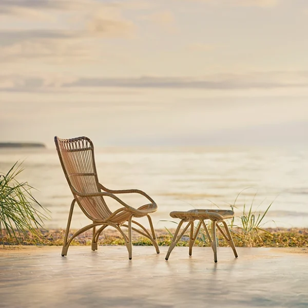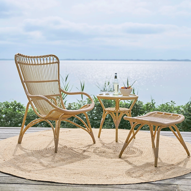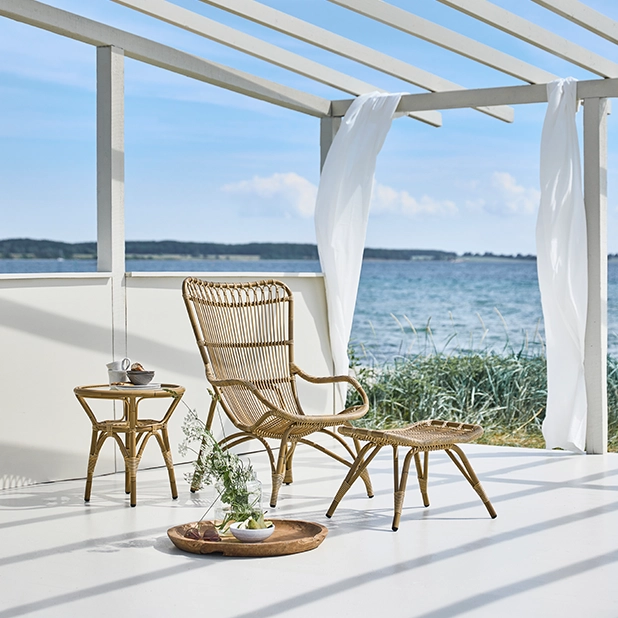 Sika Designs mest populära loungestol Monet för utomhusbruk. Designen är inspirerad av Sikas gamla ritningar från 50- och 60-talet. Det anrika rottinghantverket har verkligen kommit till sin rätt i denna stol med så många vackra detaljer i ryggen och i armstöden.